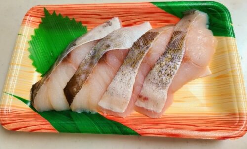 - たらは、腹骨・皮を取り、食べやすく切って片栗粉を全体に薄くつける。
