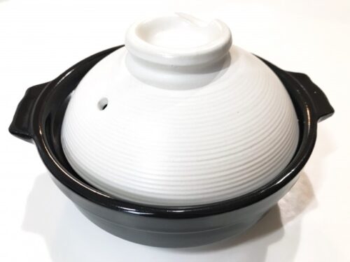 - 土鍋に米150gと水1500ml入れ、弱火で30分炊く。