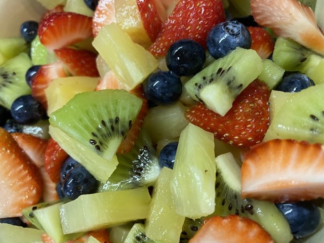 - キウイフルーツ・パイナップルは、小さめに切る。