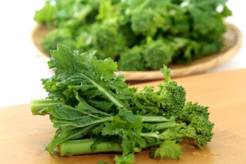 - 菜の花は、半分に切って根元を削り、塩適量を加えてゆでて氷水に取り、冷めたらざるに取る。
